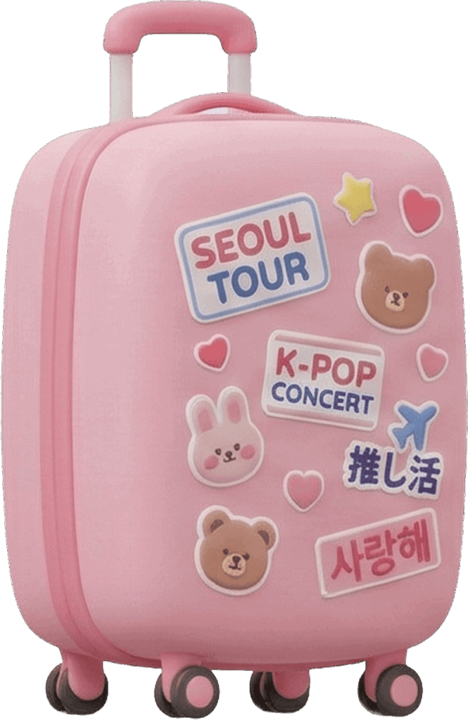 ちょっと傾けたピンクのキャリーケース