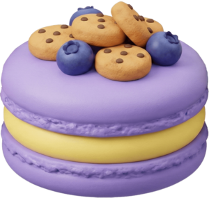 ブルーベリーとクッキーが乗った紫のトゥンカロン