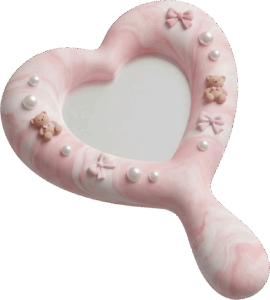 ピンクのハート型手鏡