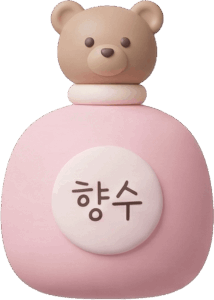 くまの蓋付きのピンクの香水ボトル