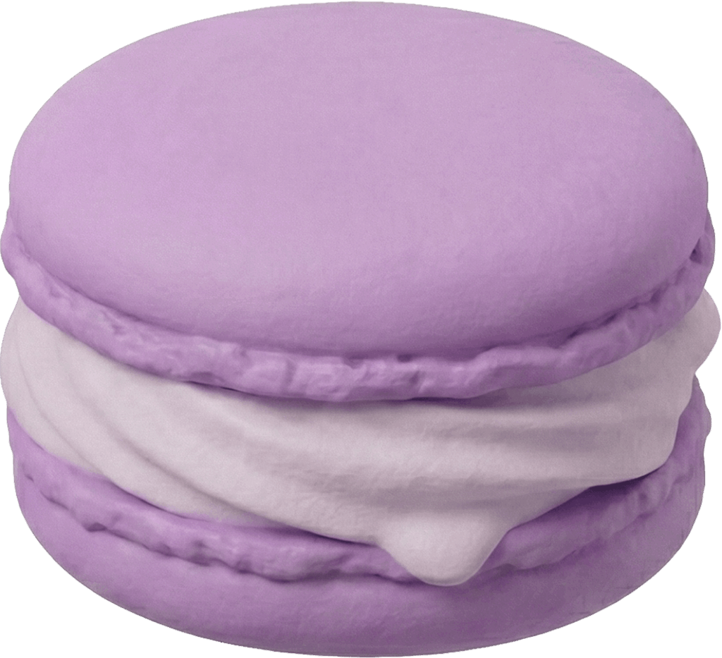 ブルーベリーとクッキーが乗った紫のトゥンカロン